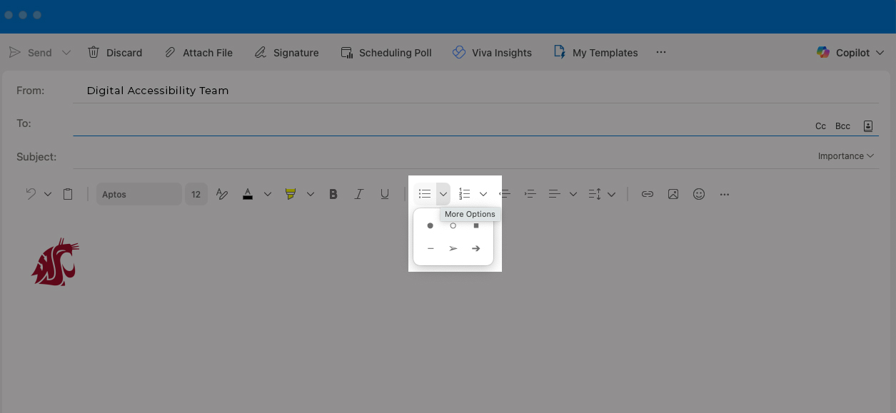 - To change a List style (bulleted or numbered), use the Dropdown menu next to the List icon.
