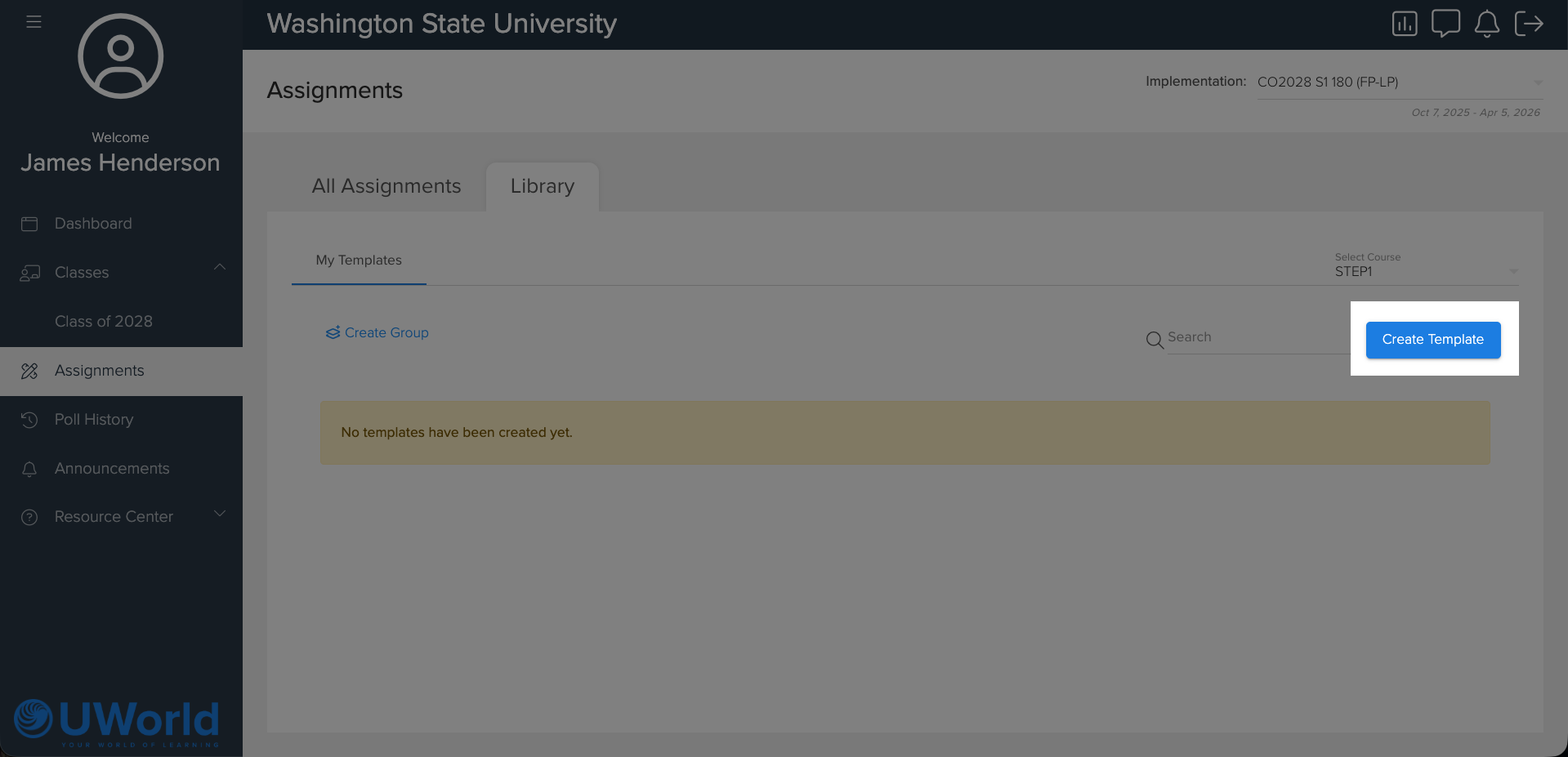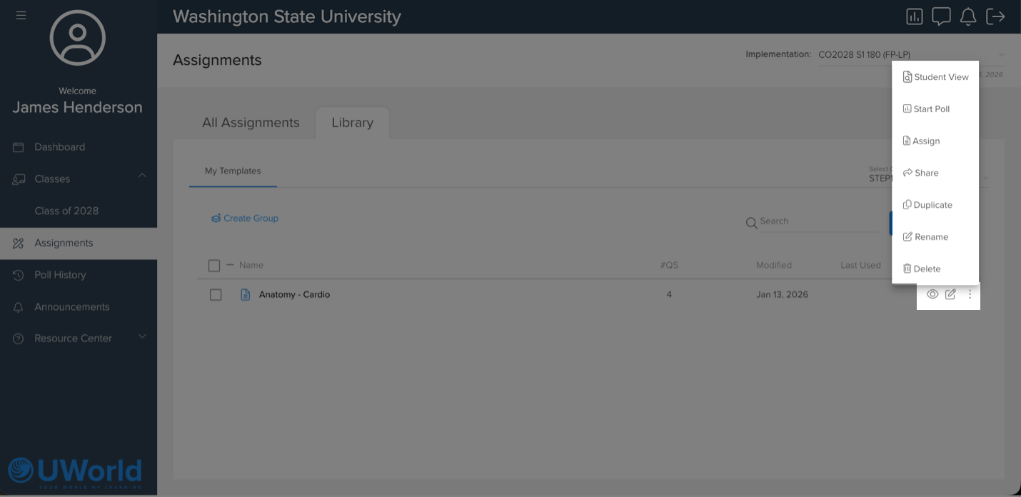 Faculty will access the UWorld Learning Platform where you can create, preview, edit, share assignment codes, duplicate, and delete/withdraw assignments.
