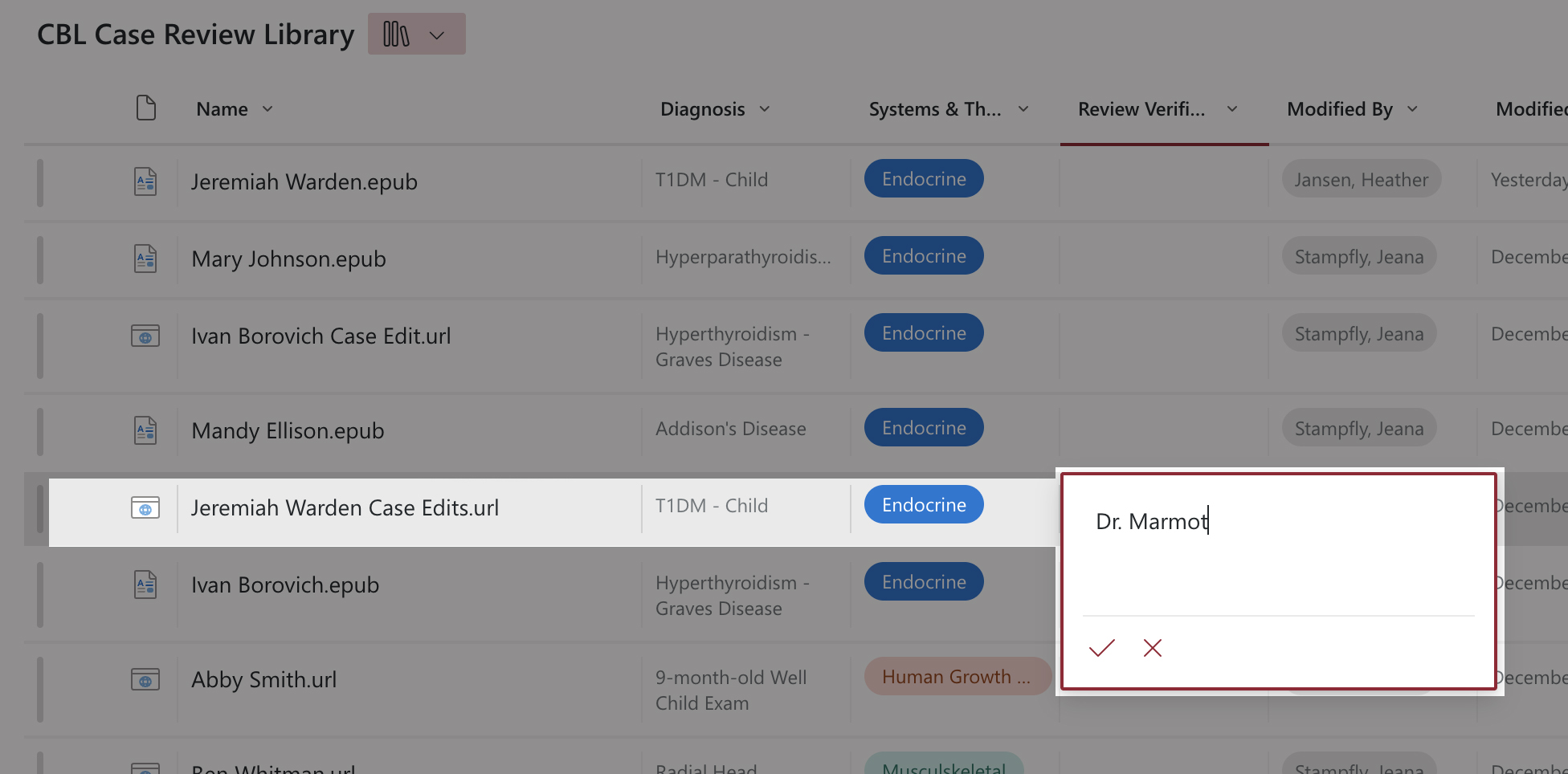 Then go to the CBL Case Review Library, and add your name to the Review Verification column. This tells us that you are finished editing this case.